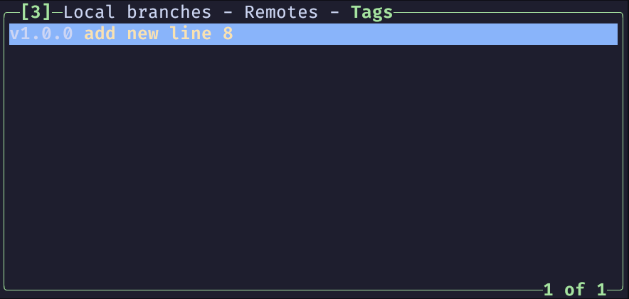 lazygit 的 tags 面板会列出当前仓库的所有的 tag, 我们可以在这个面板上对 tag 进行操作